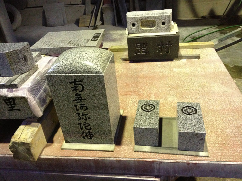 工場紹介 お客様ご自身の目で見て、ゆっくりご検討ください。 様々な種類・デザインのお墓を展示しています。 お気軽にお越しください。 展示場の様子 私達の二戸市浄法寺町の工場を紹介いたします。 緑豊かな風景の中で、皆様の想いを石の形にこめております。 石の移動に使う天井クレーン 小さい石をカットする ダイヤモンドカッター 花立などの穴をあける ボーリングマシン 大きい石をカットする ダイヤモンドカッター 工場の様子 ちょっとしたモノを削る 卓上グラインダー ボーリングマシン カットした石のストック 加工前の原石 様々な細かい道具 加工前の原石 倉庫の様子 リフォームで磨きなおしたお墓 自動研磨機 手動の研磨機